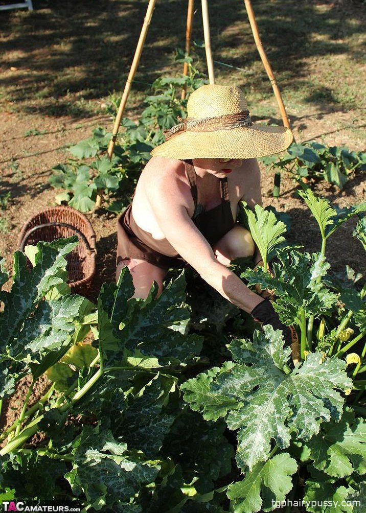 ![Зрелая тетка мастурбирует свою мохнатую письменность]()